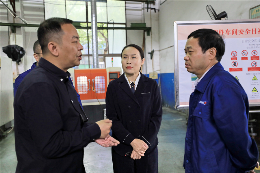 2020年9月25日,雁峰区委副书记、区长王燕一行深入我公司开展“援企服务·助力倍增”专项行动。公司党委书记、董事长龙美彪,党委副书记、总经理谭新民,副总经理邹凡丁及相关部门负责人陪同考察了老厂区生产车间,并在科技大楼一会议室召开座谈会。