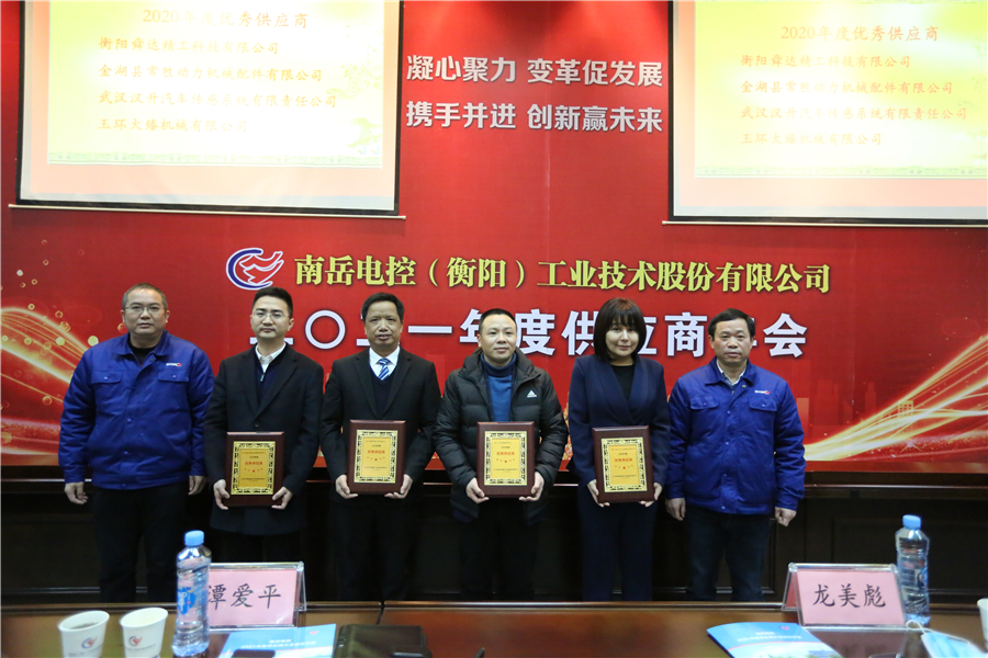 会上,公司党委书记、董事长龙美彪发表了重要讲话。他指出,南岳电控2020年生产经营取得良好业绩,销售收入同比增长26.3%,其中电控类、新能源产品销售占比超过50%,产品转型升级初见成效。公司核心管理层顺利更替,将以更强的战斗力、更明确的目标引领公司走向复兴。公司通过机制变革、员工股权受让等措施,正朝着良性、团结的方向发展。他强调,2021年是关键的一年,车用国六排放标准即将实施,南岳电控的生产经营计划将围绕多极化发展制定。他希望供应商全力做好以下配合工作:一是实现销售收入必保计划,力争上半年完成全年任务的70%;二是拟建成40万台套共轨产品产能,同时实现大批量销售,以满足公司广阔的市场需求;三是进一步提升新能源产品与船电重机的销售额;四是进一步提升成本、质量、生产、财务等方面的管理水平;五是加快推进智能制造;六是建立强大的融资平台,进入资本市场。他表示,南岳电控必须建立强大的供应链团队,在规范企业自身采购行为的同时,将与所有供应商诚信合作,助力产品质量提升,缩短新品开发流程,降低成本,同步提升双方产品转型升级能力、企业管理能力、生产制造能力及企业抗风险能力。