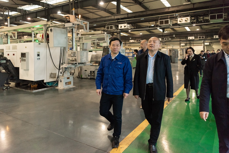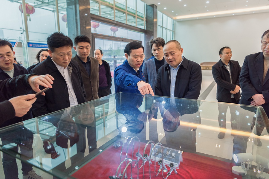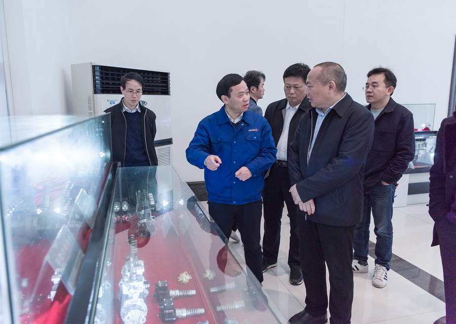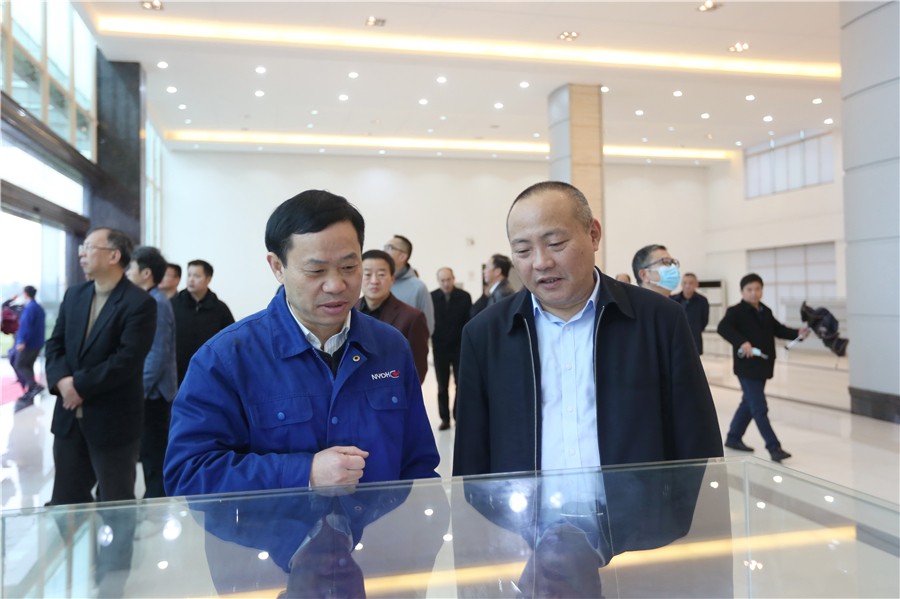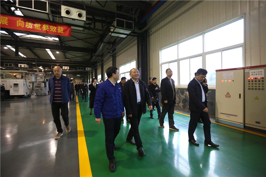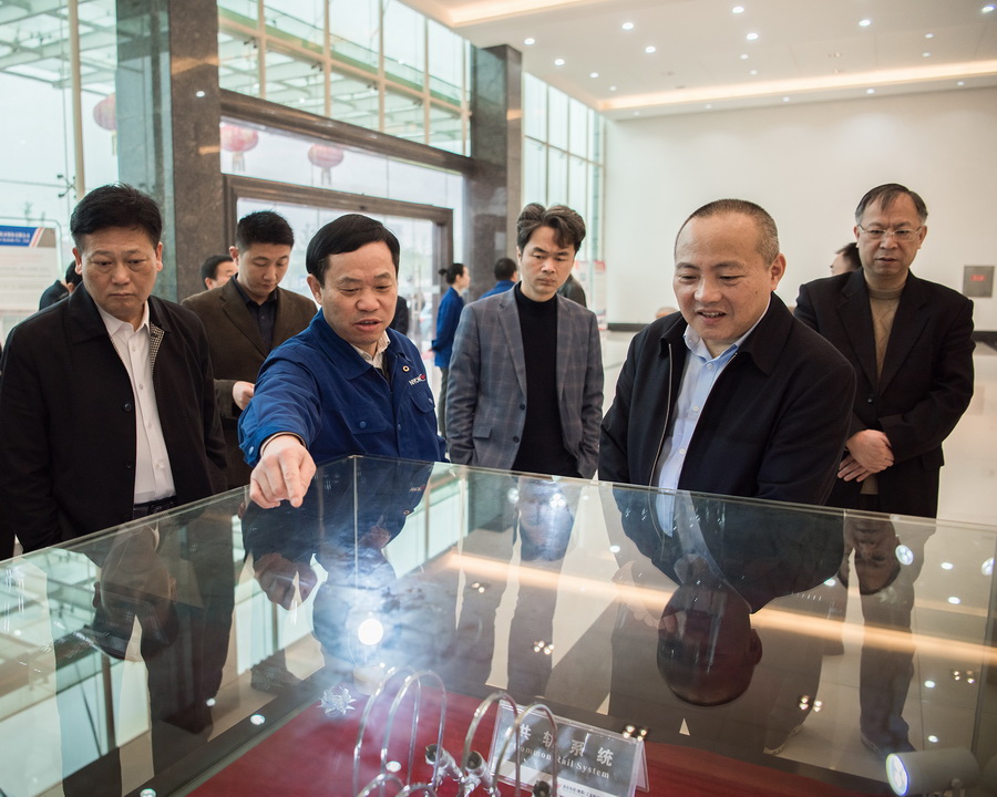 廖廷球一行先后参观了公司新厂区展厅以及金工车间生产现场。在走访过程中,公司党委书记、董事长龙美彪向其介绍了公司主导产品、公司发展战略、远景规划以及近几年公司生产经营的良好发展现状;常务副总经理谭爱平详细介绍了公司发展的历史沿革,目前公司股权结构及治理架构和当前的主要任务等。