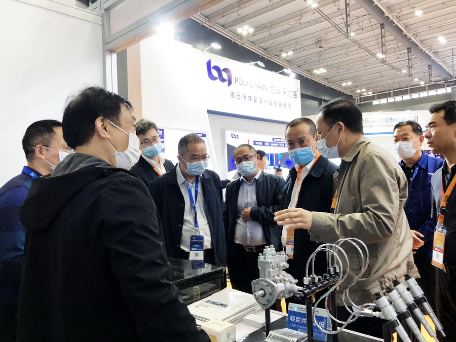 本次展会上,我公司展品分液压系统、共轨系统、铸造和热处理四个板块,主要展示热工及液压产品,主要包括提升阀、驱动轴、压力控制阀、插装阀、精密阀类零件等。展会期间,中联重科、太重榆液、金诚液压、泰亨机械、湖南泰德等数十家业内主机和配套企业代表来我公司展台进行了交流,并表达了合作意向;许多贸易公司和维修服务站代表也前来咨询,且留下了联系方式希望日后能加强合作;江西九江金诚液压代表对我公司促动泵提升阀性能给予了充分肯定,并签订了500套055泵控阀NHV901-903的采购意向合同;公司党委副书记、总经理谭新民,副总经理胡文祥还带队访问了林德液压、太重榆液等合作企业代表。