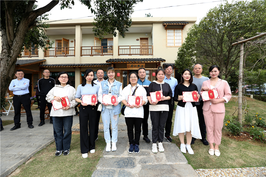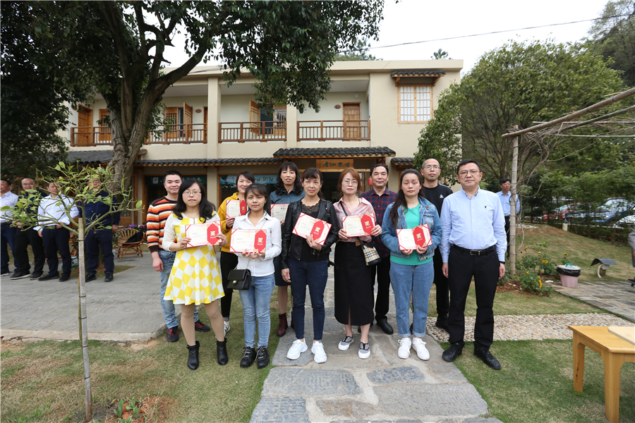 抵达万熙山房酒店前坪后,公司领导与参加活动的“芙蓉杯”岗位明星、女职工代表们合影留念。接下来,进行“芙蓉杯”女职工素质达标总结表彰,公司工会女工主任何玉兰宣读了《二0二一年度“芙蓉杯”岗位明星、先进集体表彰通报》;金工二车间、金工一车间、总装车间、质量控制部、机关三支部荣获“2021年度‘芙蓉杯’女职工素质达标先进集体”称号;李红、何静、罗海燕等20名在公司各岗位苦干实干、创新奋进的女职工荣获“2021年度‘芙蓉杯’岗位明星”称号。公司领导为获奖的先进集体和先进个人颁奖。