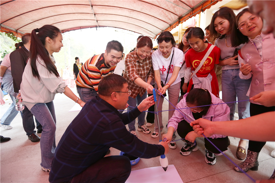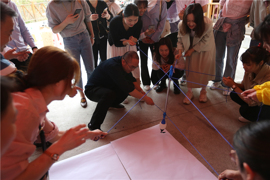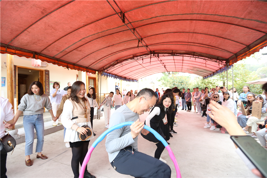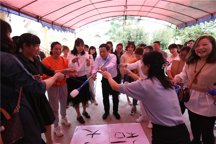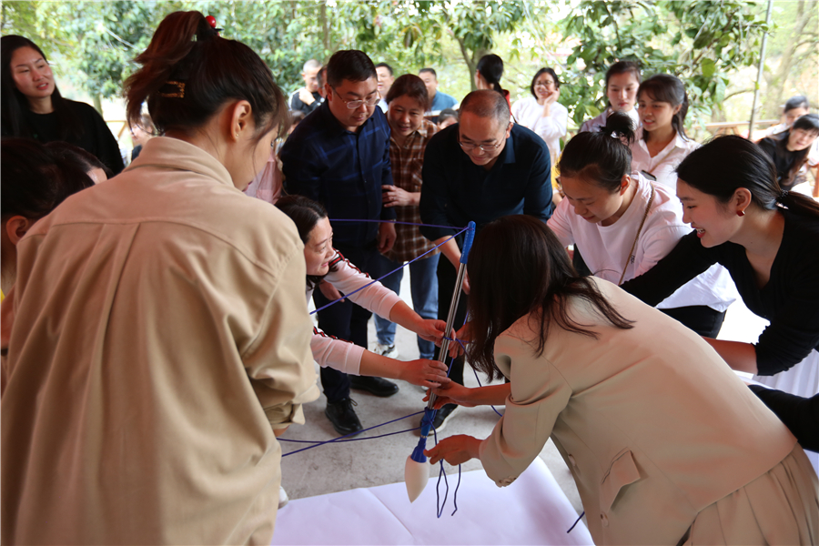 表彰活动结束后,活泼欢快,燃爆激情的趣味游艺活动正式开始。在“快乐传真”游艺活动中,“拓市场”、“全员质量”、“共轨”、“IPO” 等一个个公司职代会热词,被参与者用生动幽默的肢体语言演绎出来,既传递了欢乐元素,又使公司生产经营中心工作入脑入心。“夹纸接力传书”游艺环节,需要大家克服困难、协同配合,快速高效完成任务。“一圈到底”则是考验参与者在活动中能否积极参与、互帮互助。“共写华章”游艺节目,由八人合作共写“通力合作,共创大业”八个大字,需要参与者齐心协力、步调一致,意为共同谱写南岳电控图强复兴新篇章。