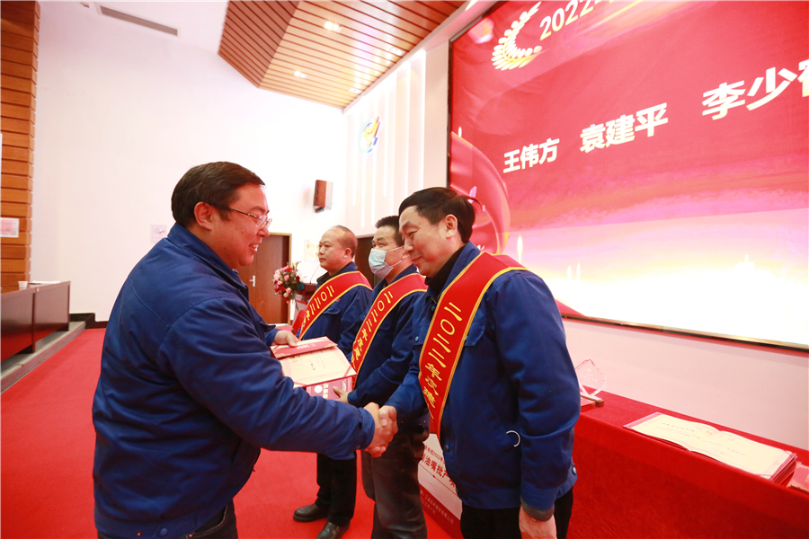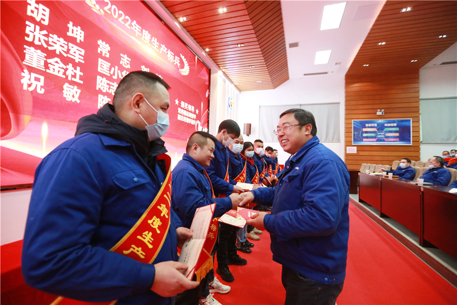 成绩来之不易,它凝聚着全体员工的心血、智慧和汗水,凝聚着全体员工凝心聚力的必胜信念和敢打硬仗的拼搏精神。为表彰2022年在各条战线上涌现出来的先进集体和先进个人,经公司劳动竞赛委员会综合评定,共评选出先进车间3个、先进部门4个、先进分工会4个、先进班组5个、生产标兵12人、“建队伍”标兵3人、“谋市场”标兵10人、“降成本”标兵7人、“提质量”标兵3人,公司级优秀项目3个。会上,公司党委书记、董事长龙美彪,党委副书记、总经理谭新民等公司领导,分别为2022年度先进集体、先进个人颁奖。