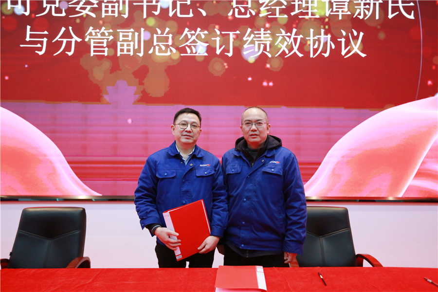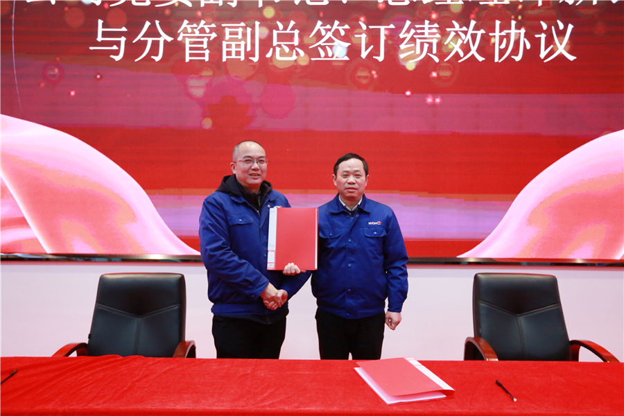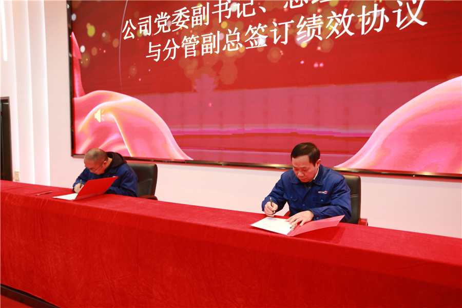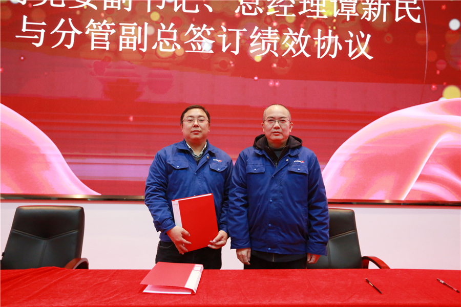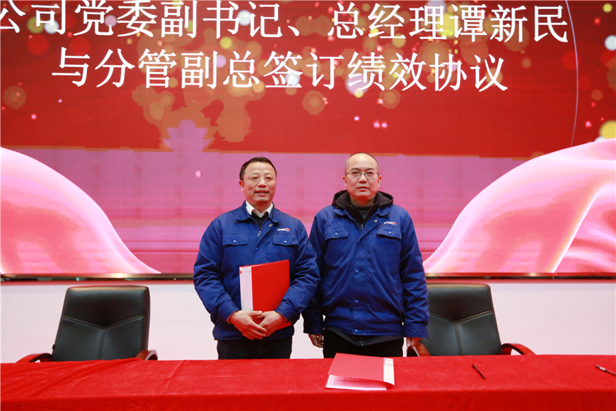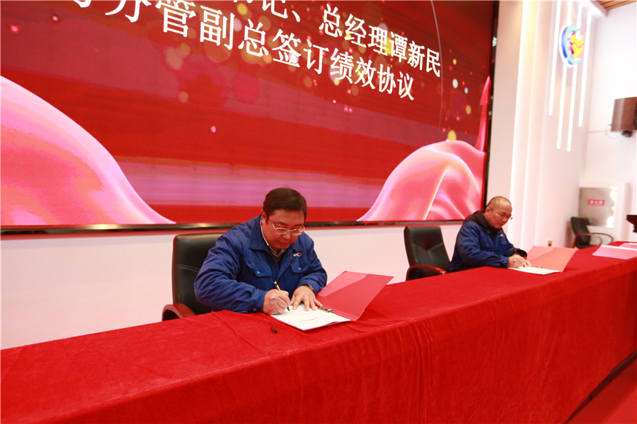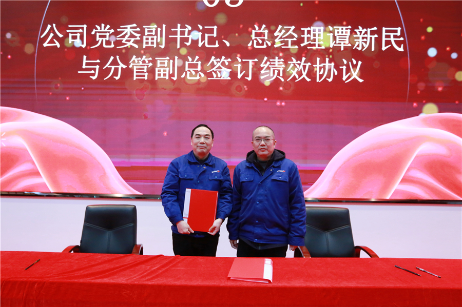 颁奖结束后,公司党委书记、董事长龙美彪与党委副书记、总经理谭新民签订了2023年度绩效协议,谭新民与各分管副总签订了2023年度绩效协议;公司副总经理李运升对春节前后的安全生产工作做了部署和安排。