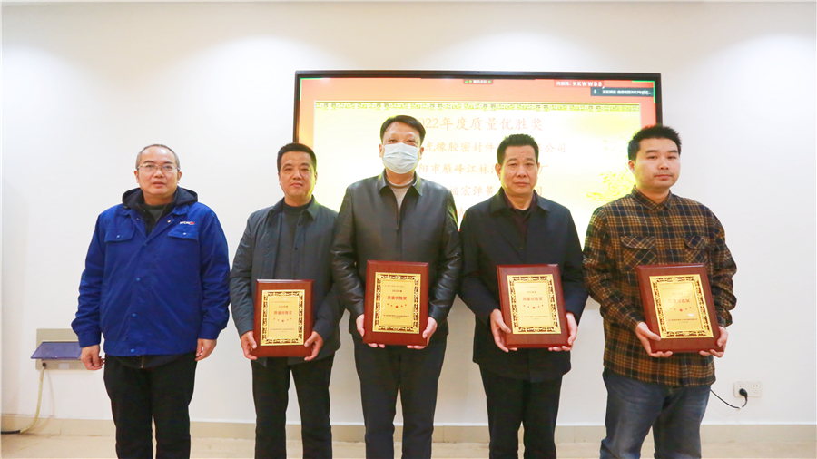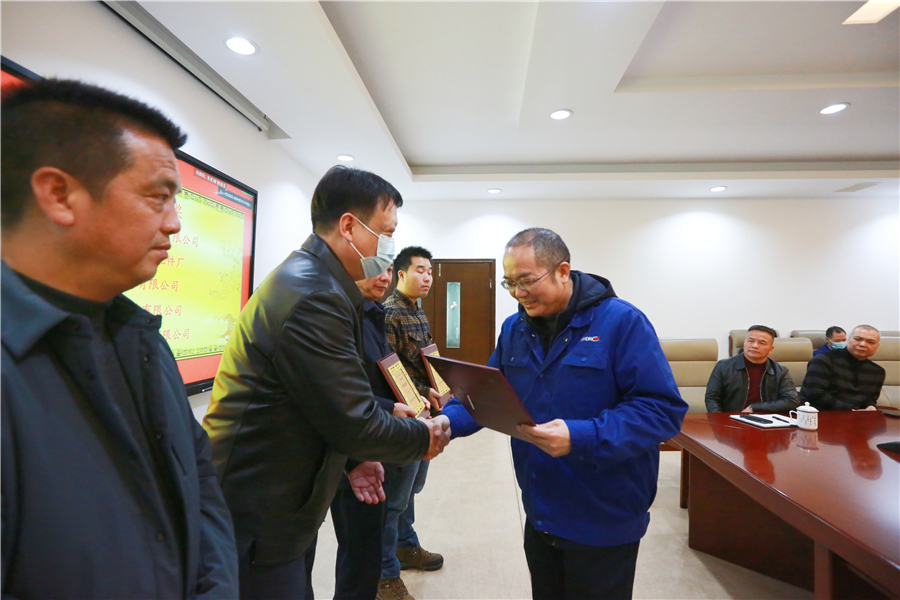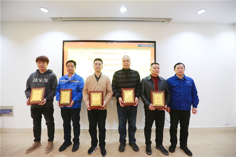 会议对2022年度优胜供应商进行了通报表彰,经公司综合评定,共评选出2022年度优秀供应商奖5个、质量优胜奖5个、新产品开发奖5个。公司党委书记、董事长龙美彪,党委副书记、总经理谭新民,常务副总谭爱平等高层领导为参加主会场现场会议的获奖供应商代表颁奖。