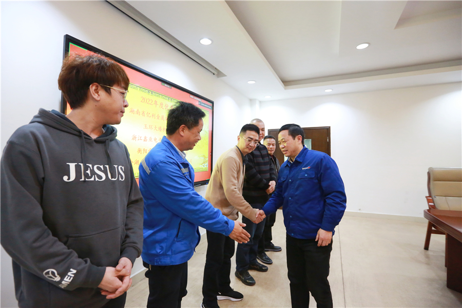 颁奖结束后,公司党委书记、董事长龙美彪发表了重要讲话。他指出,2022年,面对世界经济疲软、局部动荡不安、新冠疫情蔓延、国内经济下行压力进一步加大等诸多不利因素的影响,南岳电控内强管理、外拓市场、顽强拼争、逆势而上,全年销售收入虽然比2021年有所下降,但下降幅度低于行业平均降幅,且共轨及零部件、单体泵、船电重机销售占比达75.3%,产品转型升级取得显著成效,液压产品增幅较大,出口市场进一步拓宽,公司产品呈现喜人的多元化发展趋势,为下一步可持续发展奠定了坚实基础。他强调,2023年是南岳电控转型发展最为关键的一年,面对挑战和机遇,公司将继续实施思想变革、机制变革、管理变革,着力深化“拓市场、提效率、降成本、强质量、建队伍”五大中心工作,加快推进上市进程,奋力推动南岳电控这艘巨轮朝着良性、高效的方向航行。面对2023年更加激烈的市场竞争,他对广大供应商提出三点希望和要求:一是积极、主动做好保供工作,以满足市场对南岳电控共轨、船电、双碳、液压、出口件等板块产品更强劲的需求,重点是做好春节期间潍柴、扬柴、全柴等主机厂不休息、夺高产、保交付的配套保供工作。二是深入挖潜、提效降本,要进一步提升效率、降低成本,要通过加强内部管控,挖潜增效,激发内生动力与活力,提升产品竞争力。三是强质量,产品质量是市场立足的法宝,要有针对性解决内部已经存在的质量问题,做到自己做的产品自己心里有数,“带病”产品坚决不出厂,真正做到解决质量有办法、践行质量有底线,共筑质量大堤。他表示,2023年,南岳电控将着力打造抗风险能力更强的供应链体系,在供应链的管理上,将充分利用大数据平台,加强信息化管理,进一步提升管理效能和双向配合协作能力;南岳电控将与所有供应商精诚合作,着力提升产品质量,缩短新品开发周期,深入提效降本,凝心聚力,共同进步,共同发展。