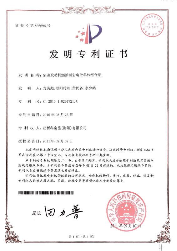 2013101278448 柴油发动机燃油喷射电控单体组合泵