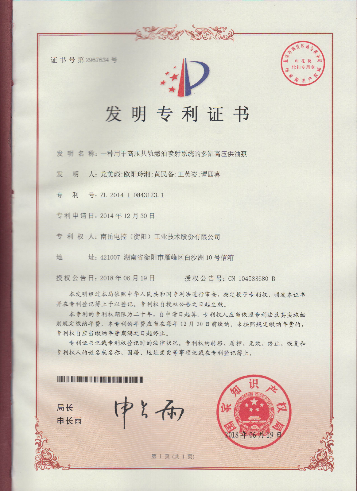 2014104114073 一种用于高压共轨燃油喷射系统的高压供油泵