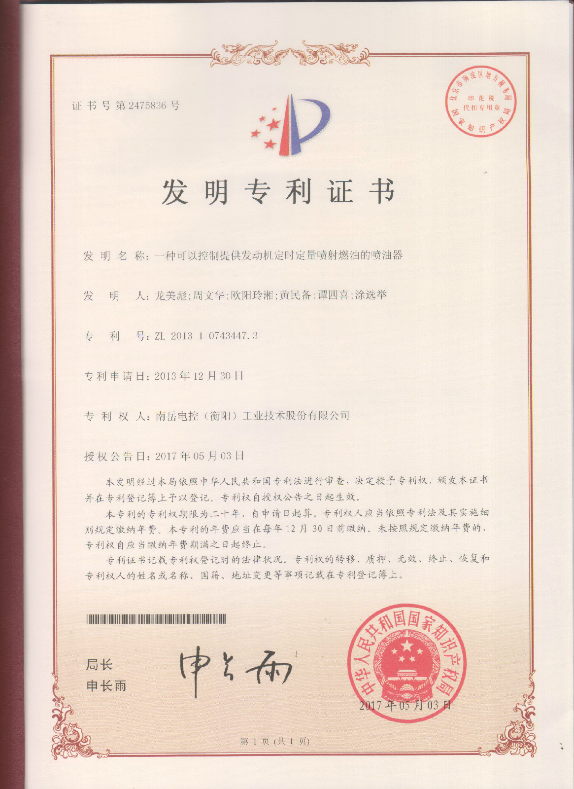 2013107434473 一种可以控制提供发动机定时定量喷射燃油的喷油器