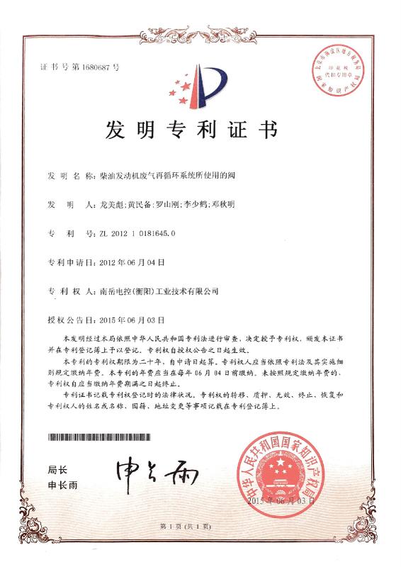 2012101816450 柴油发动机废气再循环系统所使用的阀